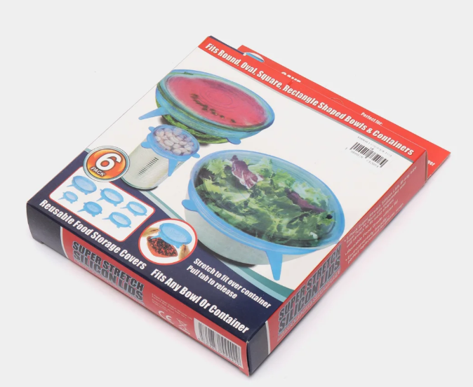 Un ensemble de couvercles extensibles est conçu pour un rangement confortable des ingrédients, des produits et des plats cuisinés dans le réfrigérateur et le congélateur. L’ensemble se compose de six couvercles qui peuvent être fixés à des ustensiles de cuisine de tout type : saladiers, assiettes profondes, bocaux en verre, casseroles. Le produit est fabriqué en silicone avec des propriétés sans danger pour les aliments. Le matériau n’émet pas de substances toxiques