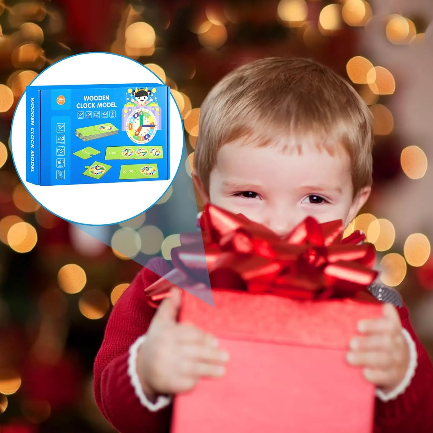 • 【Horloge Calendrier pour Enfants】Le produit comprend une horloge en bois, un support et 15 cartes recto-verso. L’horloge d’apprentissage pour enfants est dotée d’aiguilles mobiles des heures, des minutes et des secondes qui peuvent être ajustées en fonction de l’heure indiquée sur la carte. Avec cette horloge calendrier, votre enfant apprendra facilement toutes les informations sur l’heure.