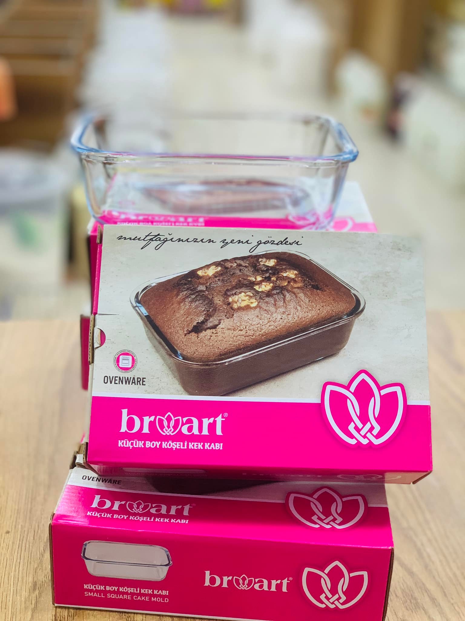 Ce moule à gâteau de la marque Broart, modèle « KÜÇÜK BOY KÖŞELİ KEK KABI » (petit moule à gâteau carré), est idéal pour la pâtisserie. Fabriqué en matériau résistant à la chaleur, il est conçu pour être utilisé au four (indiqué par la mention « OVENWARE » sur la boîte). Son design carré et ses dimensions compactes le rendent parfait pour la préparation de petits gâteaux, de brownies ou de pains de mie.
